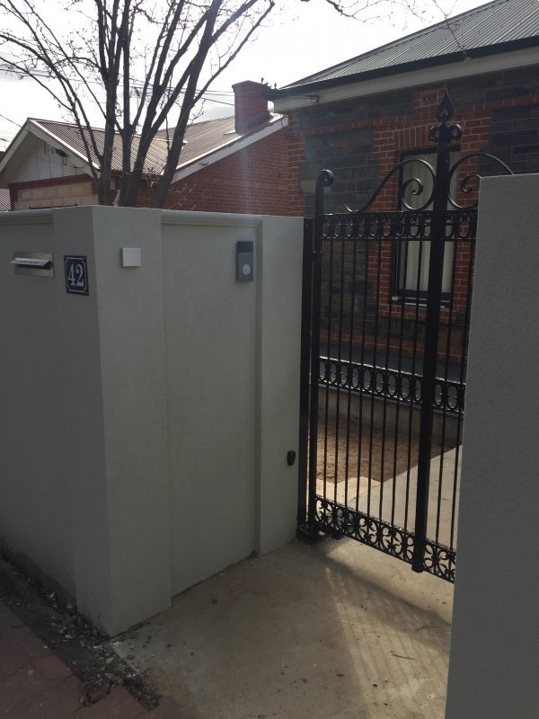 A masonry style fence with columns